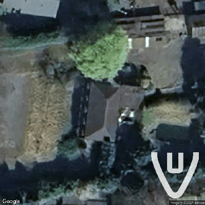 Swing-Along is an abandoned property located in the province of Oost-Vlaanderen, Belgium. The site features a white house with a blue roof and boarded-up windows, set within a yard containing a large pool, a small pond surrounded by trees and bushes, and overgrown vegetation. Several urns are located throughout the yard. The interior includes a room with peeling pink walls and a wooden bed frame, a small room with blue walls and a brown floor, and a large empty room with a black ceiling, orange walls, and pink baseboards. The bathroom is finished with white tiles and contains a sink, a toilet, and urns scattered on the floor. A dilapidated warehouse on the property has concrete walls, a metal roof, and two white couches. Another white building on the site has three doors and a large hole in the center of the floor. Decorative elements found inside include a black wall and a blue wall, both featuring three heart-shaped cutouts. Abandoned items left behind include a "Happy Birthday" banner hanging from a radiator, a pink butterfly figurine, a broken glass object on a red carpet, and an urn with a blackened bottom. Various rooms contain debris, trash, and broken furniture.